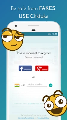 We very much value and protect your privacy. Please read our terms and conditions (https://chkfake.com/terms-and-condition/) and accept them before using the app.